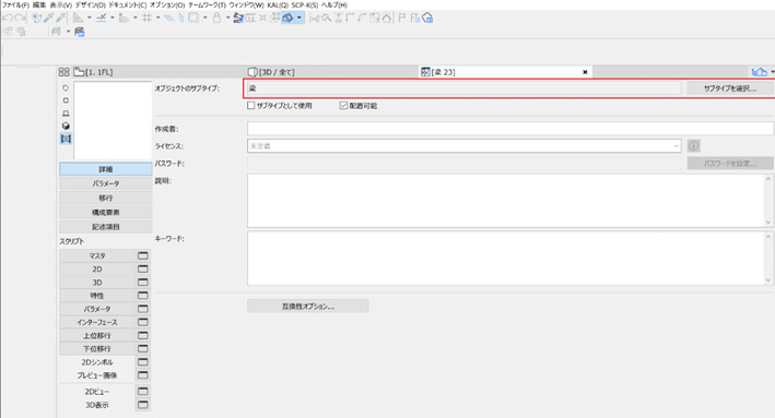 (サブタイプの確認は、変換されない部材を選択→「ファイル」→「ライブラリとオブジェクト」→「オブジェクトを開く」から確認できます。)